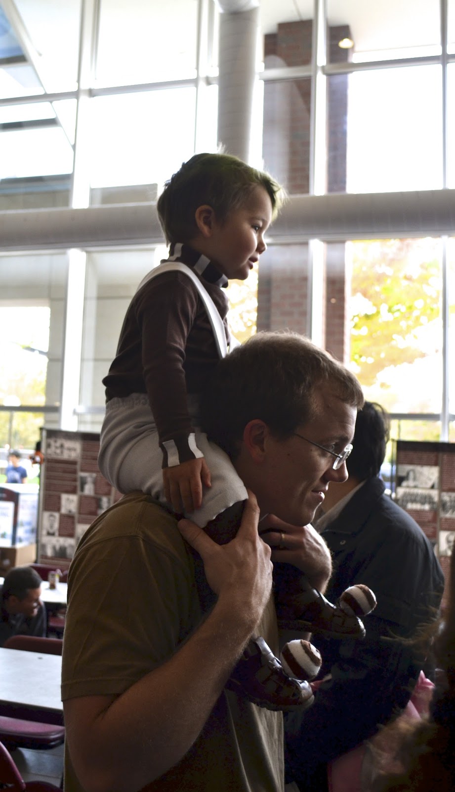 Later that week we went to the MIT Halloween Carnival. (We sprayed his hair green to get a fuller affect of the Oompa Loompa. We skipped the orange face paint due to a toddler rubbing his face = potential orange everywhere!)